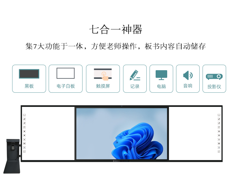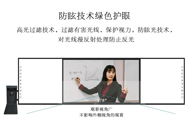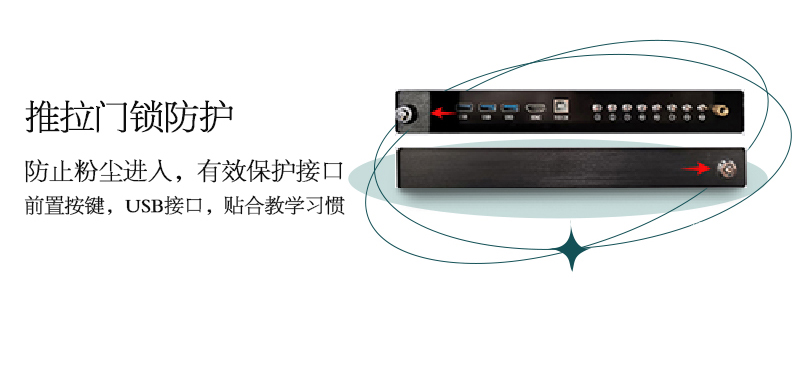 机身保护——独特的推拉门锁设计,保护前置按键及接口,还能收纳白板笔和教鞭;