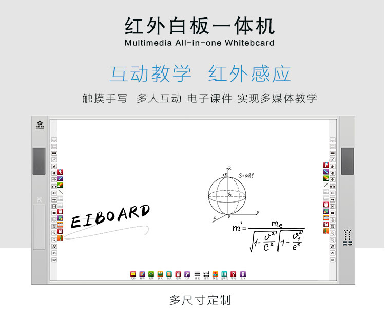 红外白板91香蕉视频黄色在线观看集电脑、音箱、展台、智能中控、白板于一体,采用一体化无缝拼接设计美观大气,电控展台方便收纳,红外二十点触控满足多人同时书写,板面采用冷轧面板防撞防刮,尺寸扩展性强,满足不同教学场景需求。